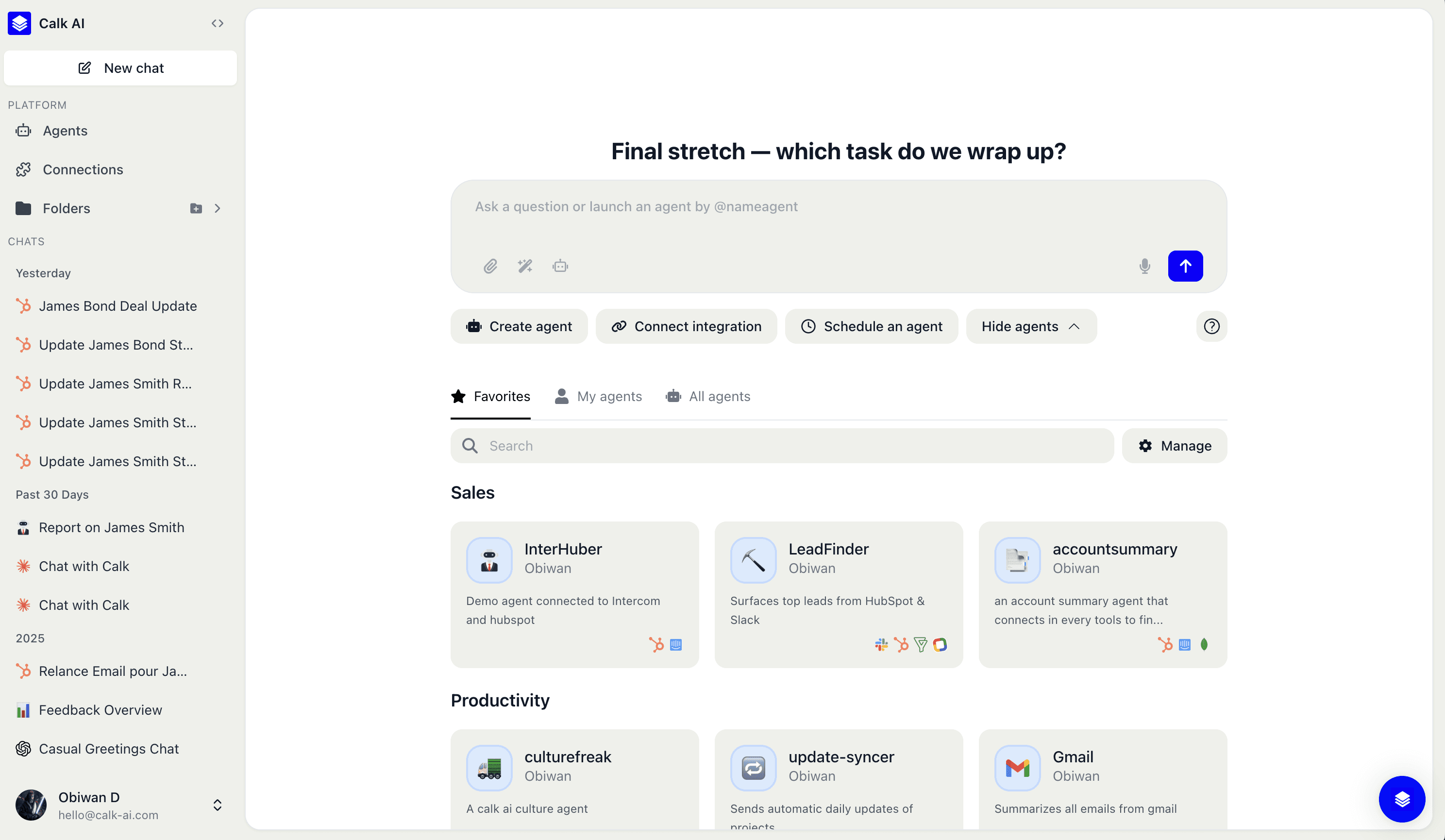 Explore our pre made agents. Each one is made to automate one or multiple at the same time. Calk AI can automate the busywork so you can focus on what really matters